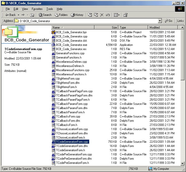 - If you've got a Win32 or any other standard C or C++ structure definition, and you want it to be a standardised C++ Builder VCL class complete with properties, events, and automated error checking, the BCB_Code_Generator will help you do it easily and automatically.