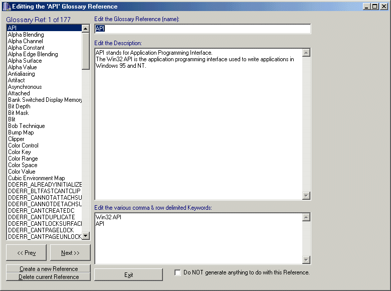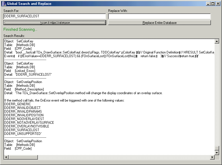 It contains massive amounts of information, databases for most of the DirectX 7.0a SDK and DirectX 9.0c SDK, and it's very BIG.