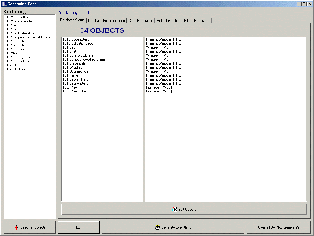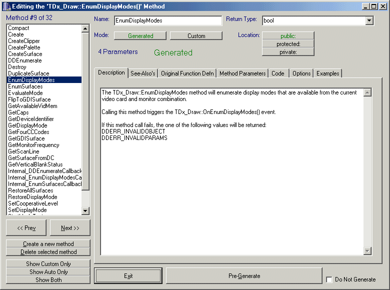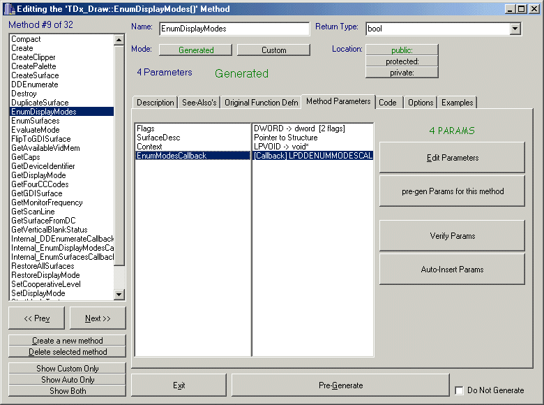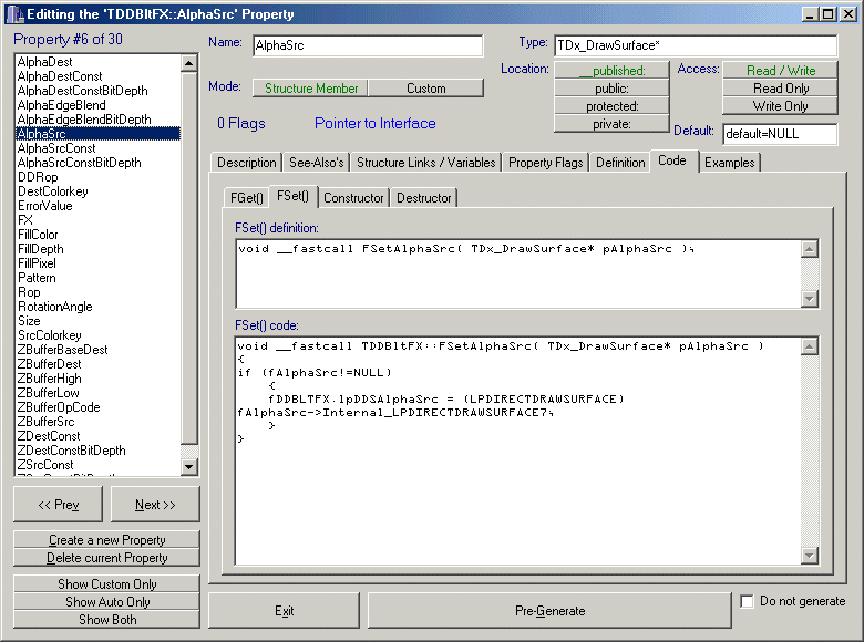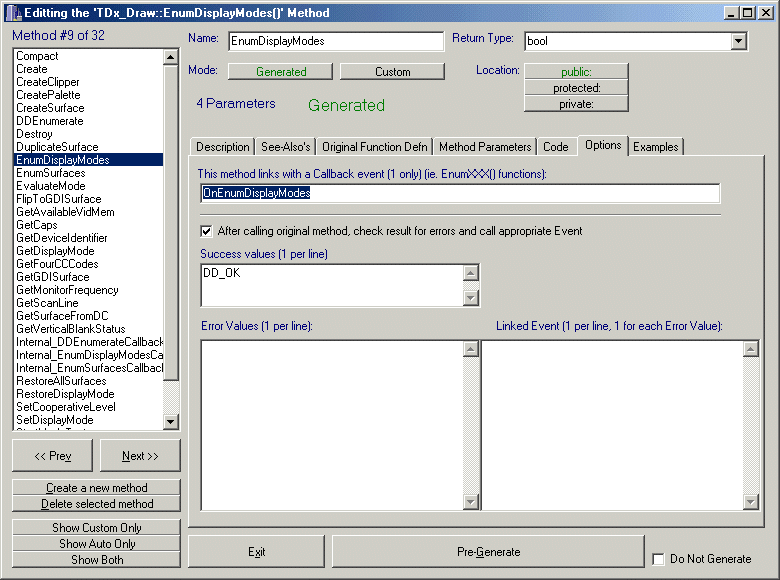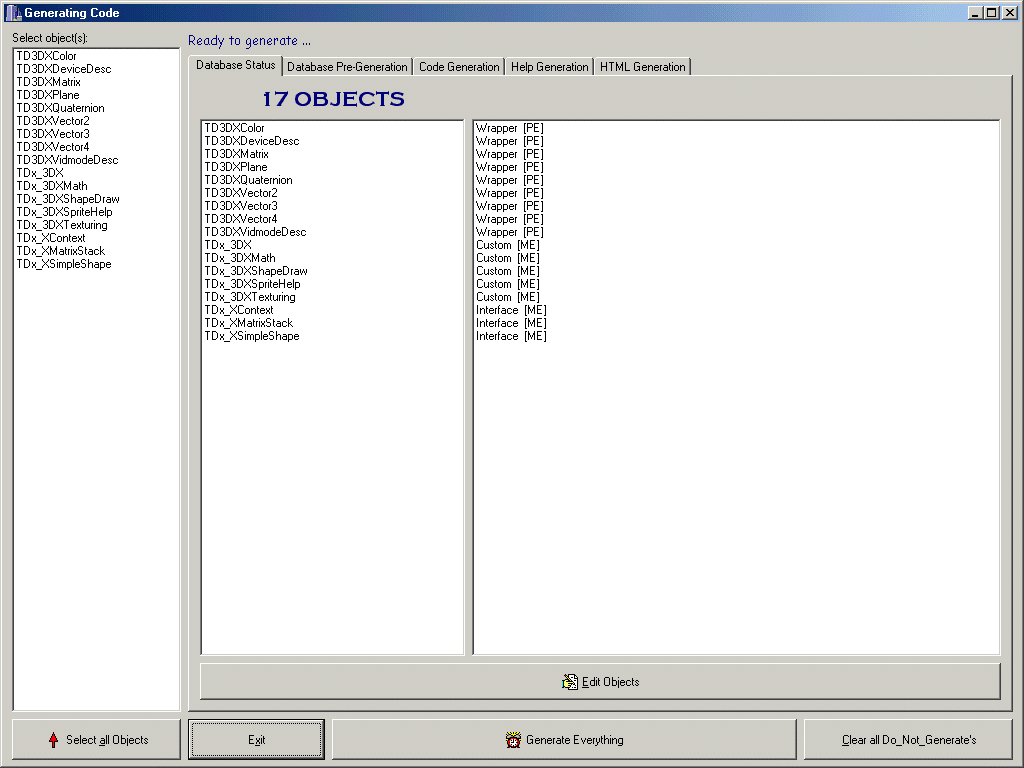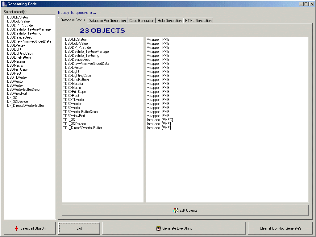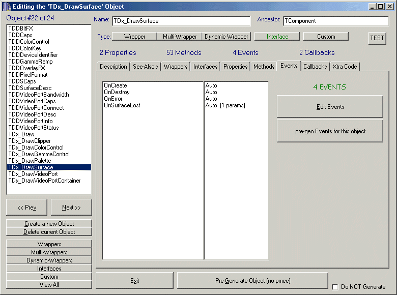 - Pre-Generation (pregen) is where the generator auto-creates database records, code, descriptions, settings, etc. as required to convert from Win32 style code to working VCL style code.