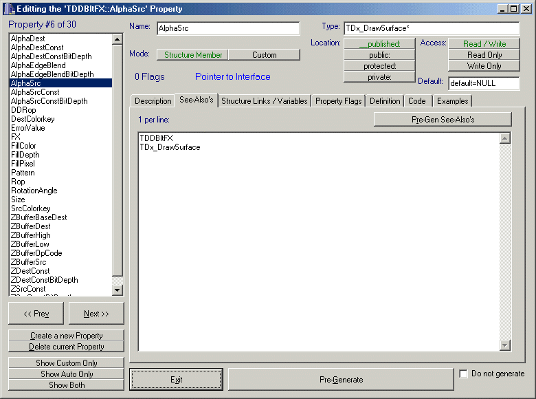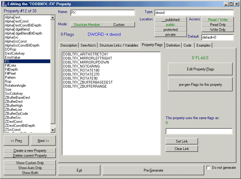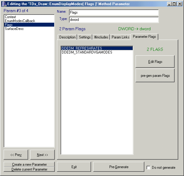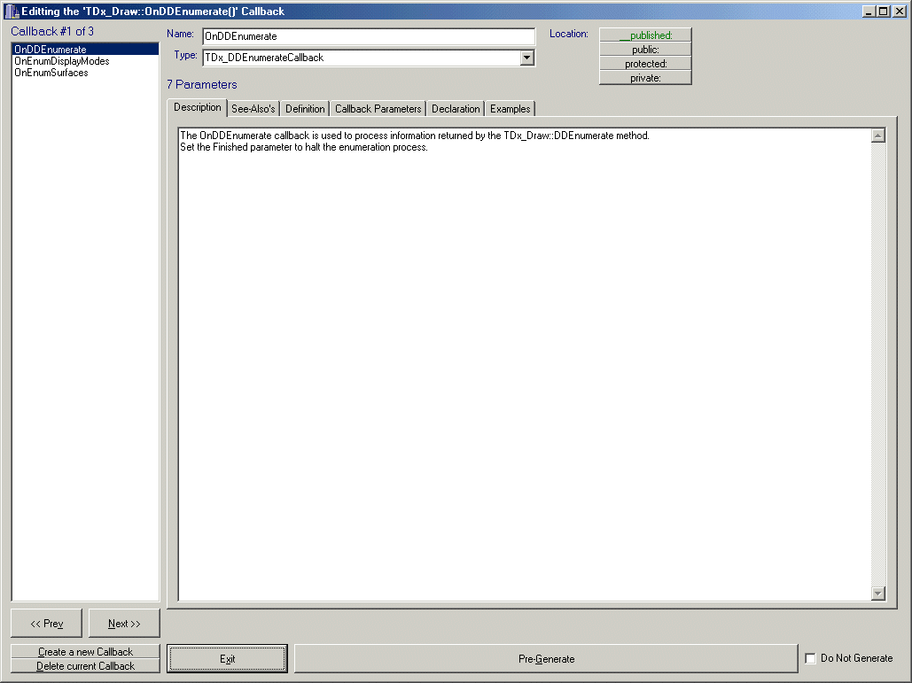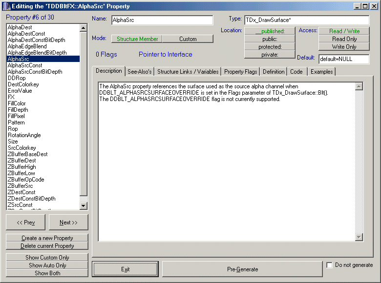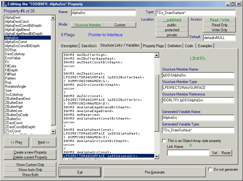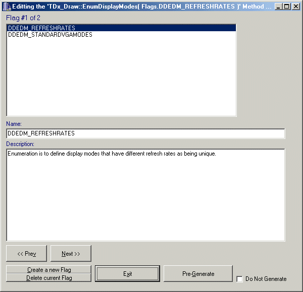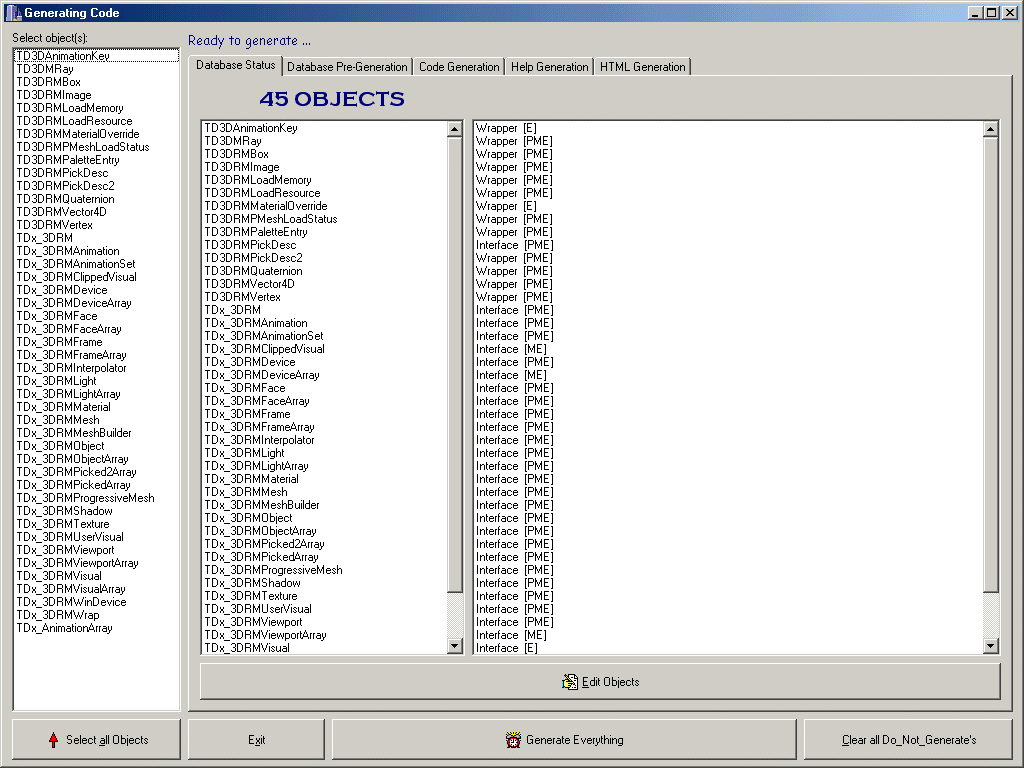 - Pre-Generation (pregen) is where the generator auto-creates database records, code, descriptions, settings, etc. as required to convert from Win32 style code to working VCL style code.