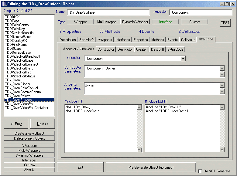 Using the BCB_Code_Generator, and after setting this object up as an "Interface" component,